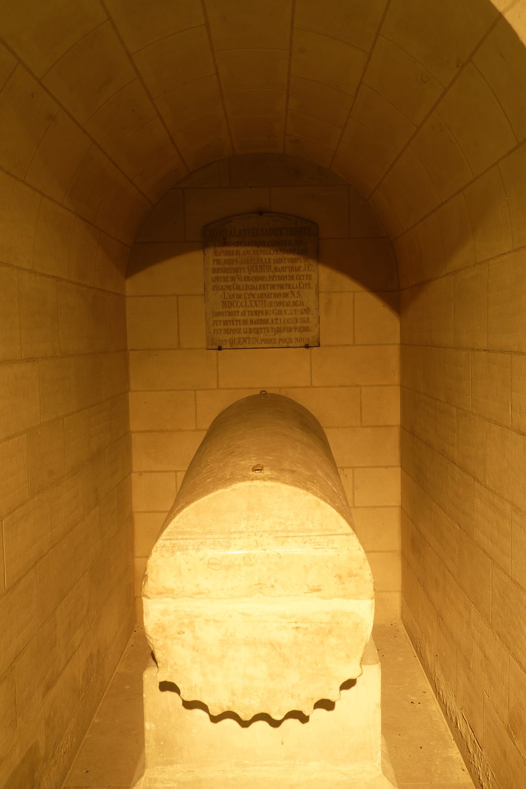 Nous descendons dans la crypte qui abrite le tombeau de Quintinus.