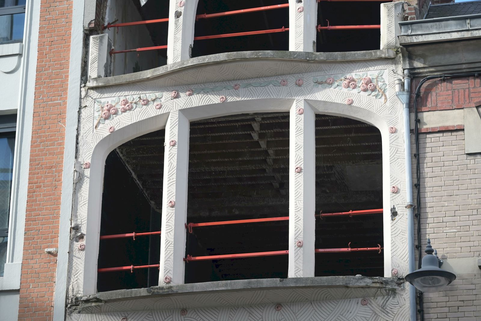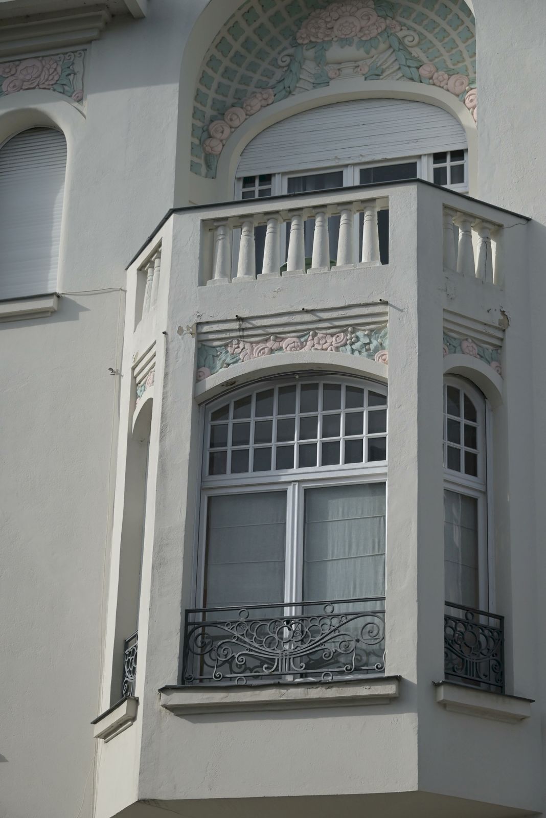 Le guide nous fait remarquer les roses stylisées des décors, les bow-windows, les fer forgés, les pas de moineaux des pignons.