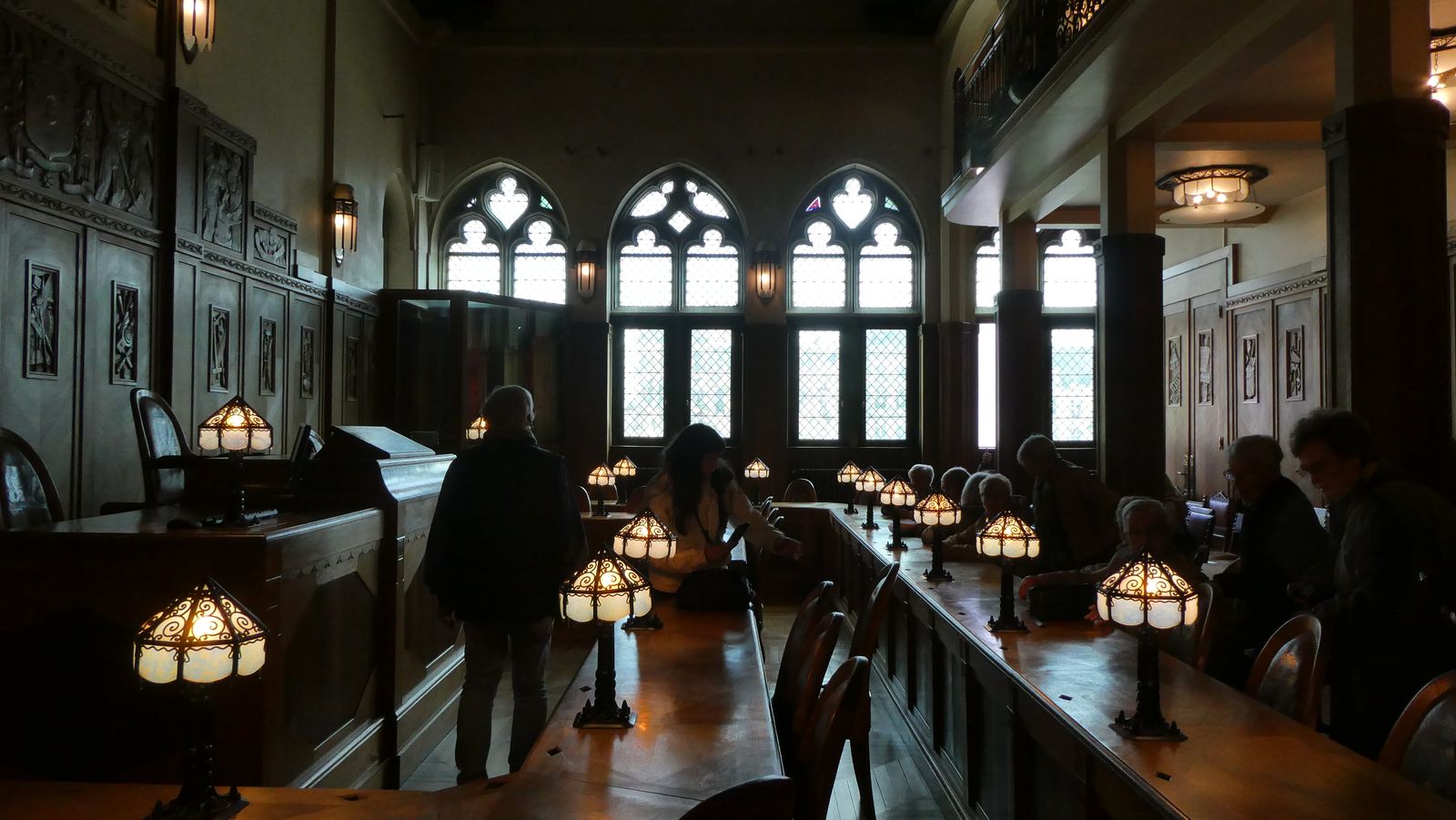 Nous gagnons à pied le « Grand Café de l’Univers » qui nous accueille au premier étage où les vitraux de plafond apportent une touche de luxe en même temps que de chatoyantes couleurs. Par les vitres nous voyons l’Hôtel de Ville.