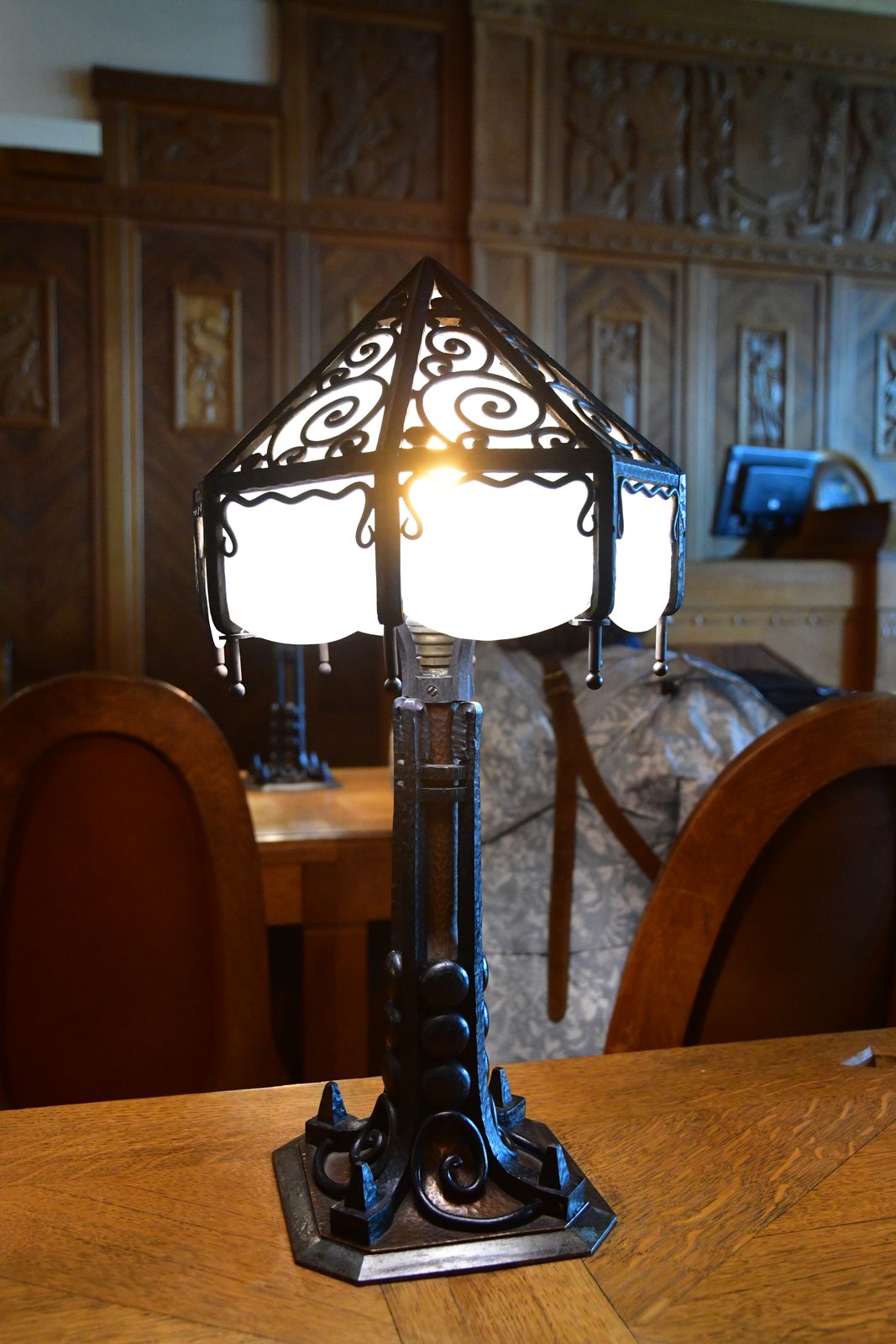 Le vandalisme a fait disparaître le mobilier du Bar, les lustres avec des opalines anti-éblouissement, qui ont été refaits à l’identique.