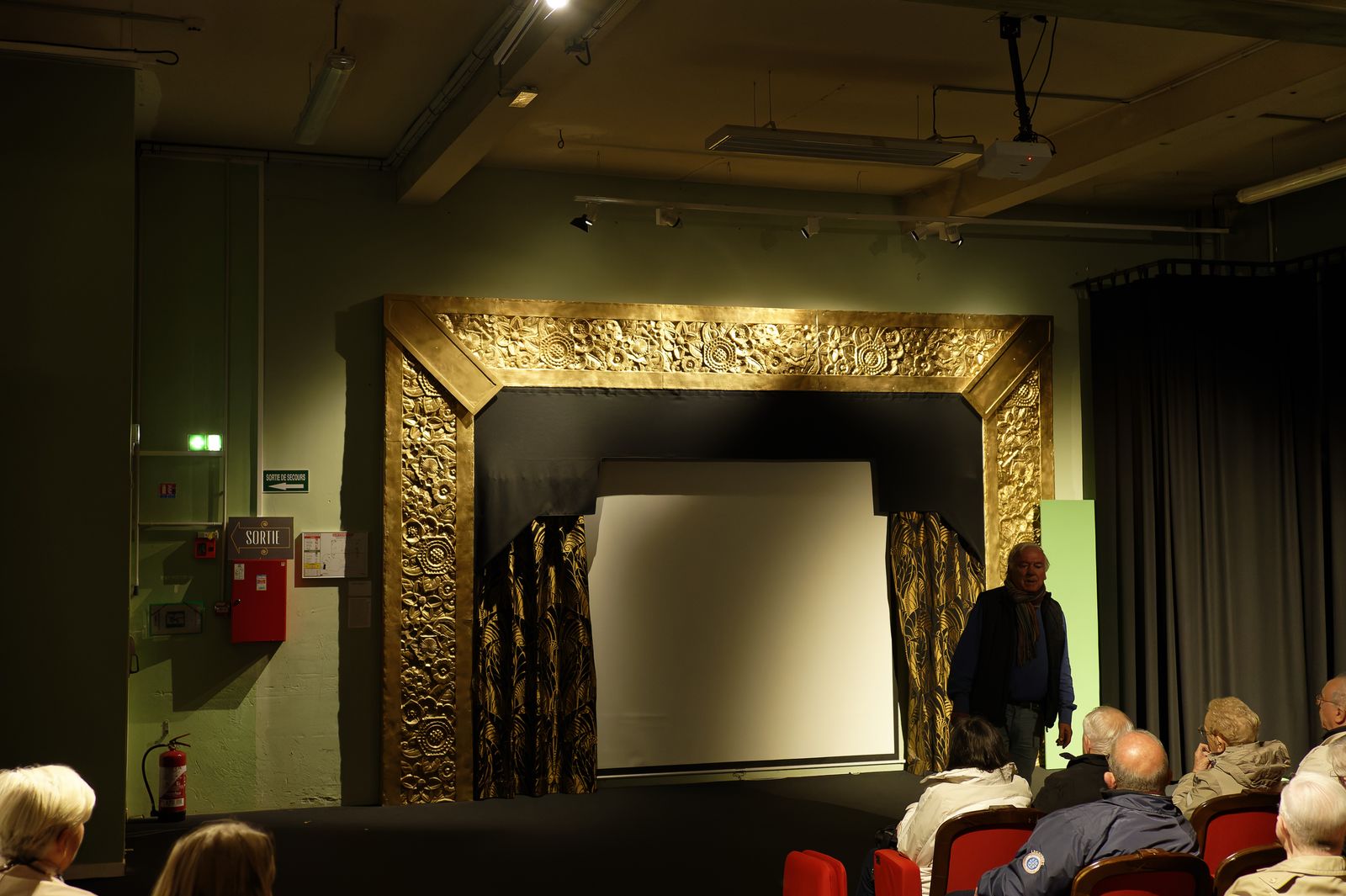 Une grande maquette rappelle le projet architectural d’origine du grand magasin. Nous terminons notre visite par la petite salle de cinéma où le guide nous souhaite un bon retour.