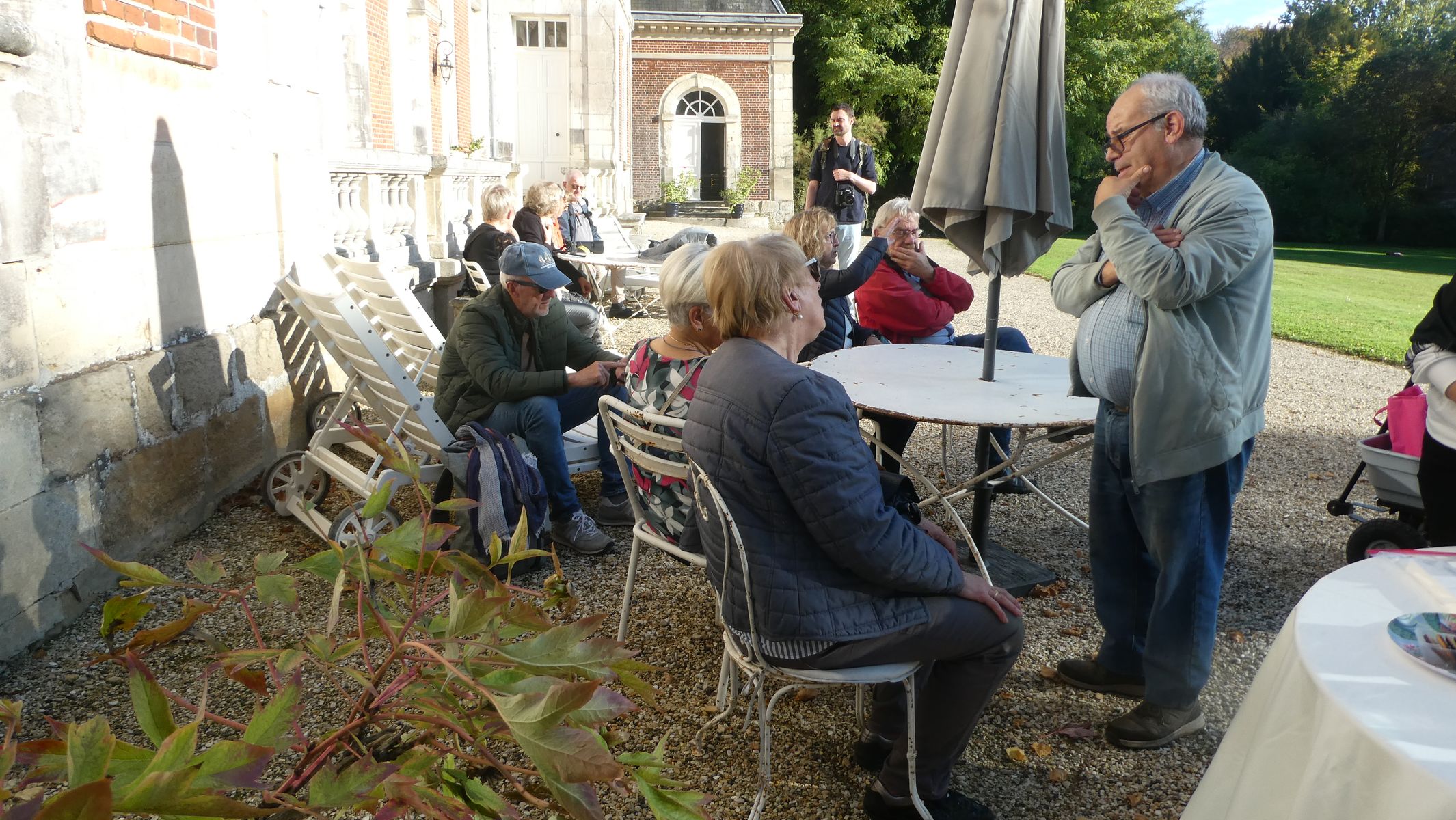 Nous visitons l’orangerie, les anciennes cuisines et notre journée se termine, toujours sous le soleil, par un pot de l’amitié pris devant le château, face au magnifique parc.