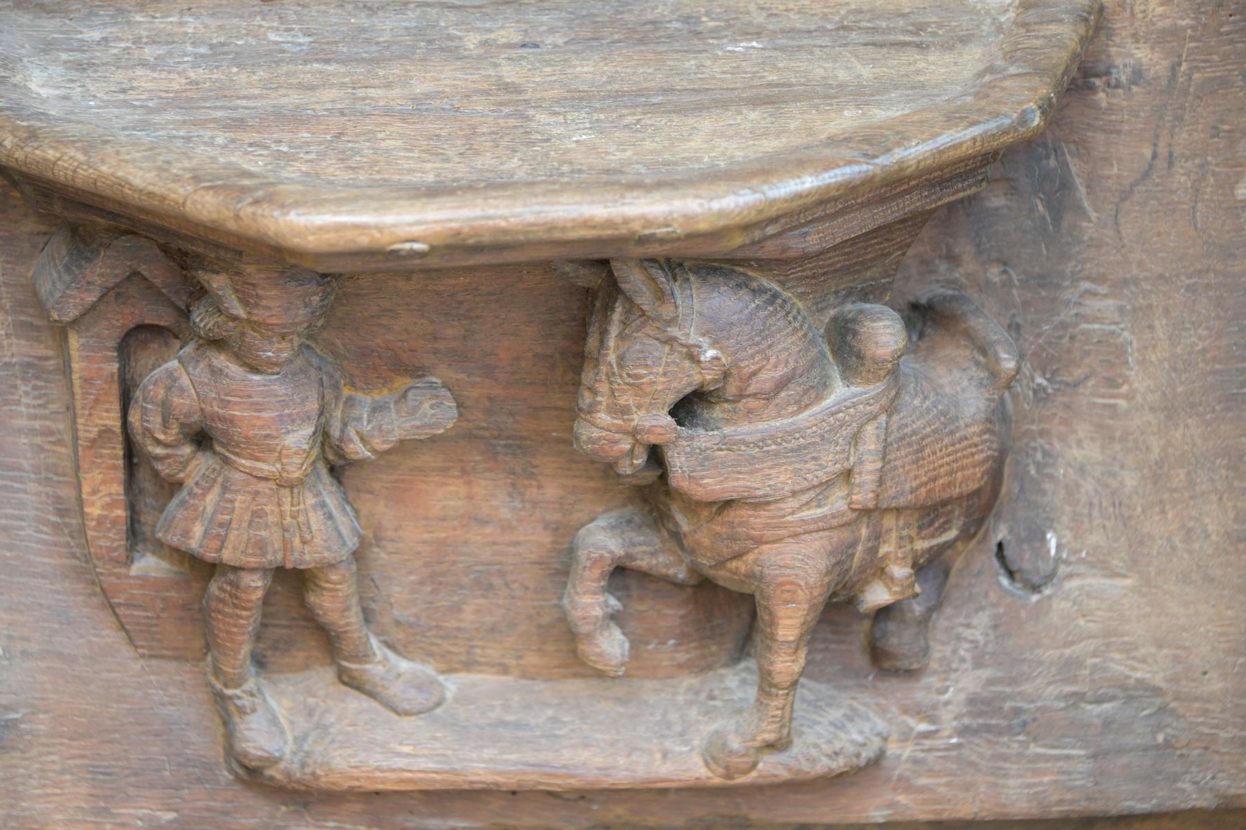 L’ensemble de stalles de Saint-Martin-aux-Bois a pu être daté précisément, grâce à une analyse dendrochronologique, qui a établi que les derniers arbres avaient été abattus en 1498, et à un document d’archive qui précise que la pose était terminée au début de l’année 1501. Lors de cette pose, l’ensemble était disposé dans le haut de ce que nous appelons la nef. Lorsque l’église est devenue entièrement paroissiale, les bancs des fidèles ont occupé cet espace, et une partie des stalles a été transportée dans l’abside, où elles sont restées.