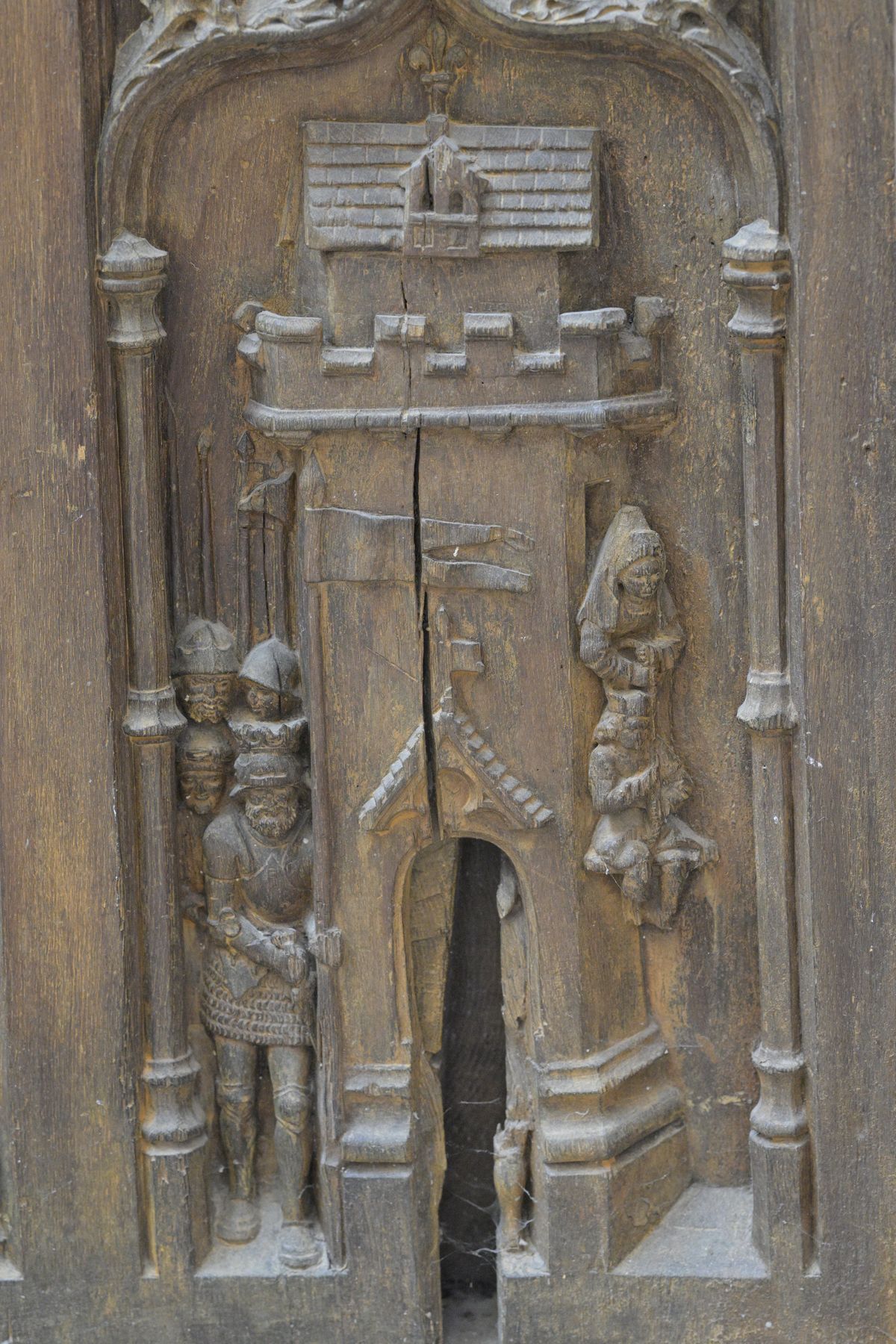 Dans le haut du bas-côté sud s’ouvre une porte majestueuse qui conduit à une chapelle (maintenant utilisée comme sacristie) et qui abrite une Lamentation (ou déploration) sur le Christ mort.