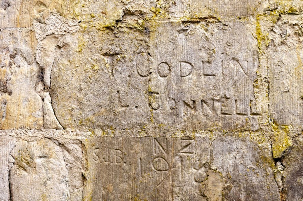A l’extérieur, quelques graffitis témoignent du passage des troupes britanniques lors de la guerre de 1914.