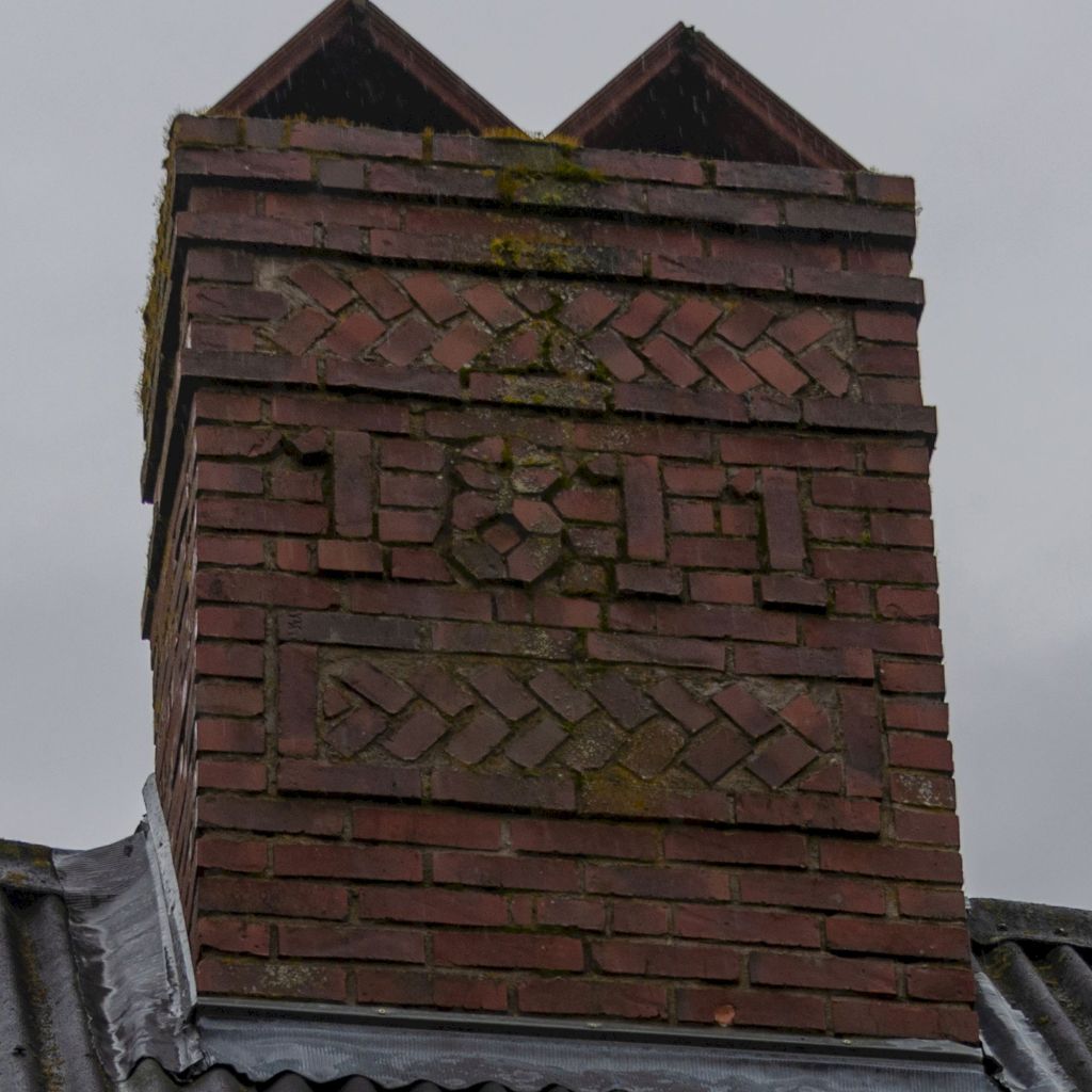 Le soubassement est en brique recouvert par un enduit granité de plus de 100 ans.