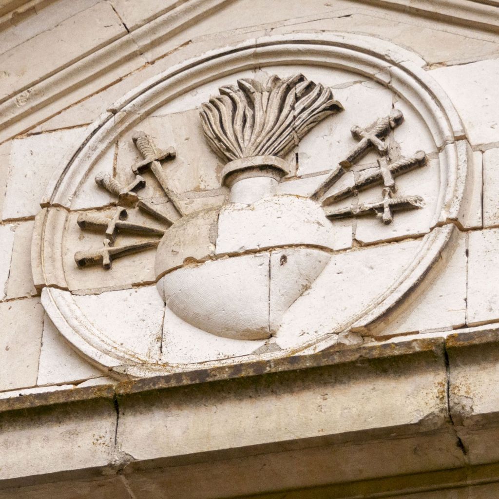 L’entrée de l’époque médiévale reste en place. Les grilles par contre sont du XVIIIe siècle.