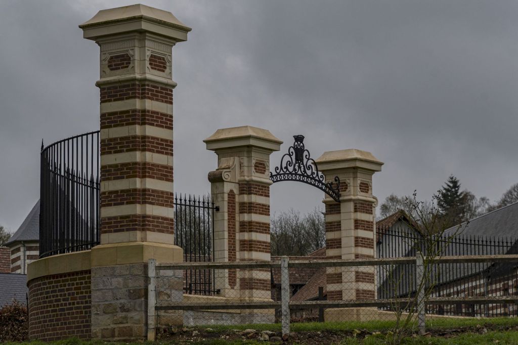 Le portail a été restauré et les grilles ne sont pas encore replacées.