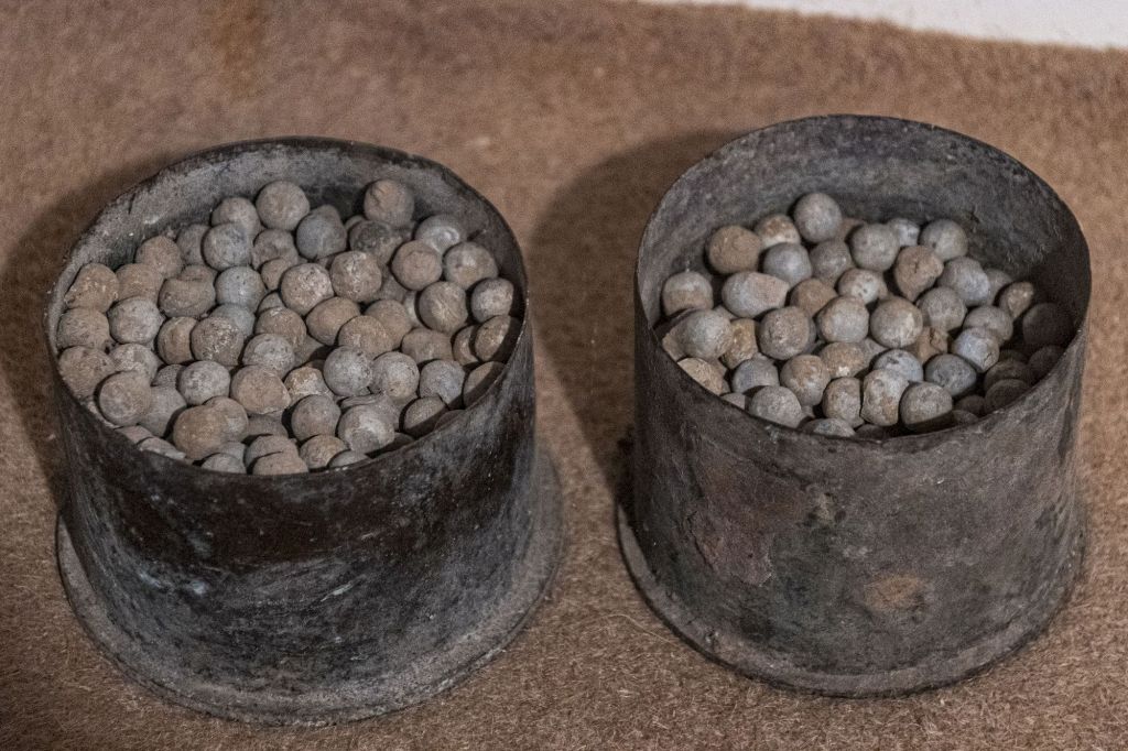 Une salle présente aussi des objets de la Première Guerre Mondiale : casques Adrian, shrapnells, artisanat des tranchées avec les douilles d’obus.