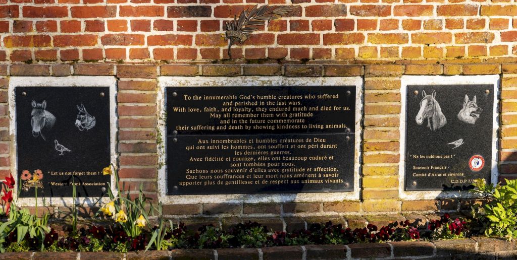 Puis en revenant vers la salle des fêtes, où Monsieur Lacroix, maire de Couin, nous attend, nous nous arrêtons devant le Mémorial aux animaux morts pendant les guerres, installé en 2004.