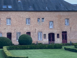 Nous descendons par la suite vers un cloître fermé, c’est une galerie carrée avec un jardin central. Les sœurs y trouvaient le silence et la solitude. Elles pouvaient y déambuler sans se gêner. Le jardin offrait un temps de récréation où l’on pouvait se parler et être ensemble. C’est aussi le lieu de vie et de mort. Une croix au milieu indique l’endroit où les sœurs avaient rassemblé les ossements des Capucins vivant là à l’origine.