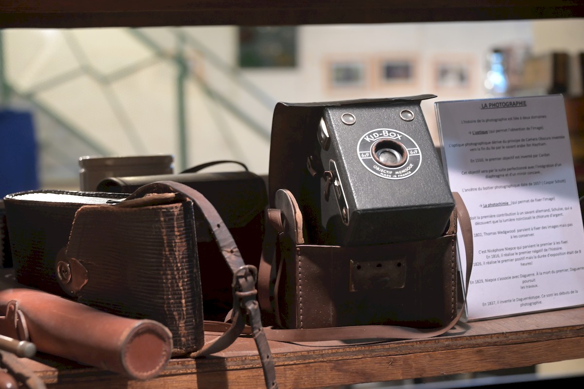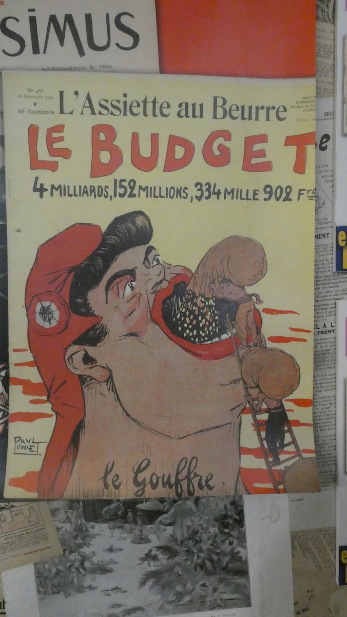A la fin de la présentation nous quittons la médiathèque. Au musée nous passons par un espace » presse » qui expose des originaux comme » l’assiette au beurre » et du matériel de prises de vue.