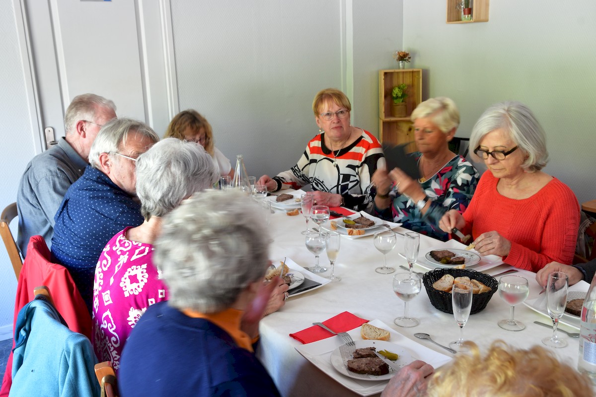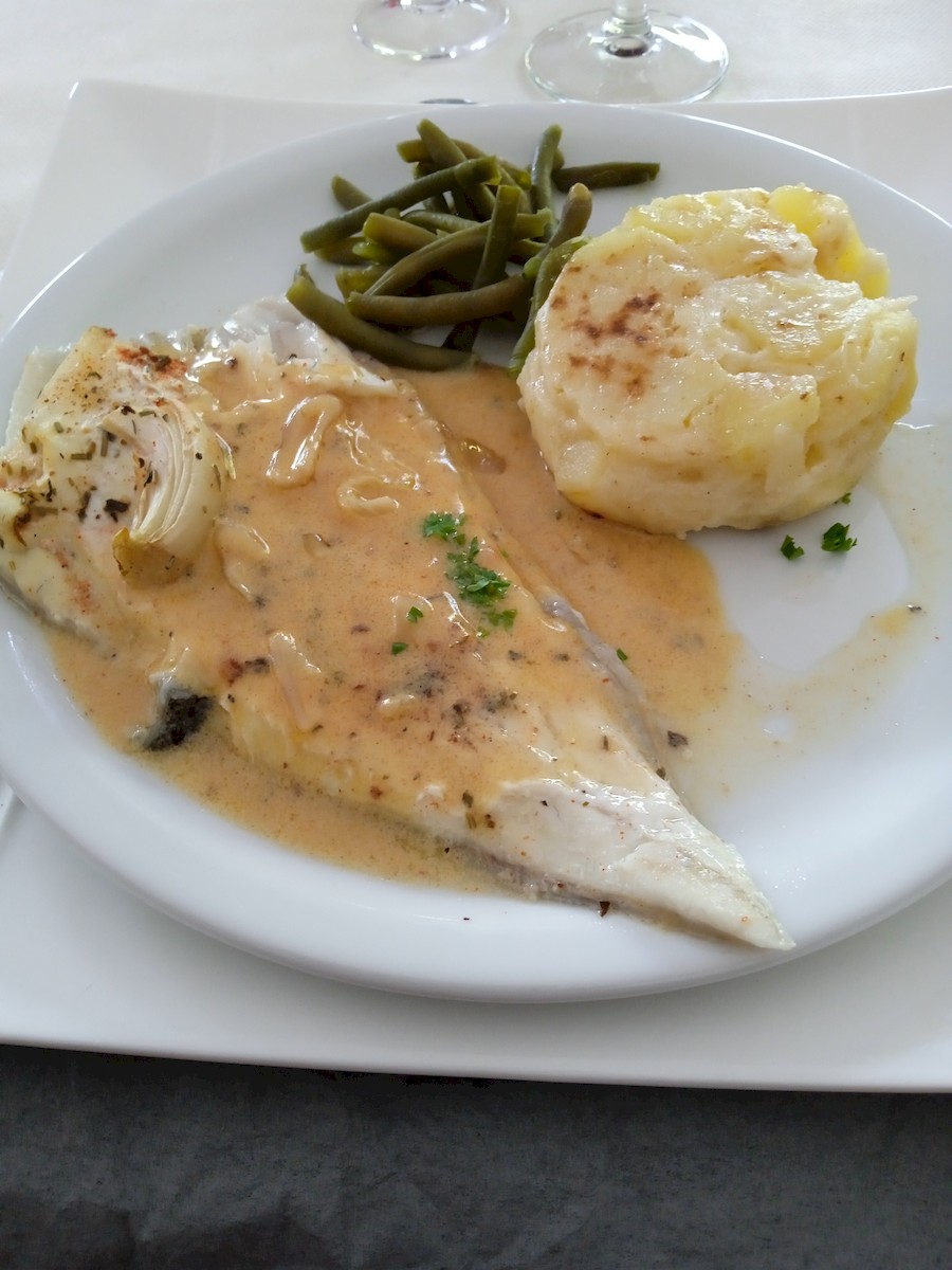 Nous nous sommes rendus à l’Auberge du Vermandois au 36 de la rue Nationale où nous attendaient après la soupe de Champagne la terrine du chef puis le Turbot beurre blanc et un tiramisu.