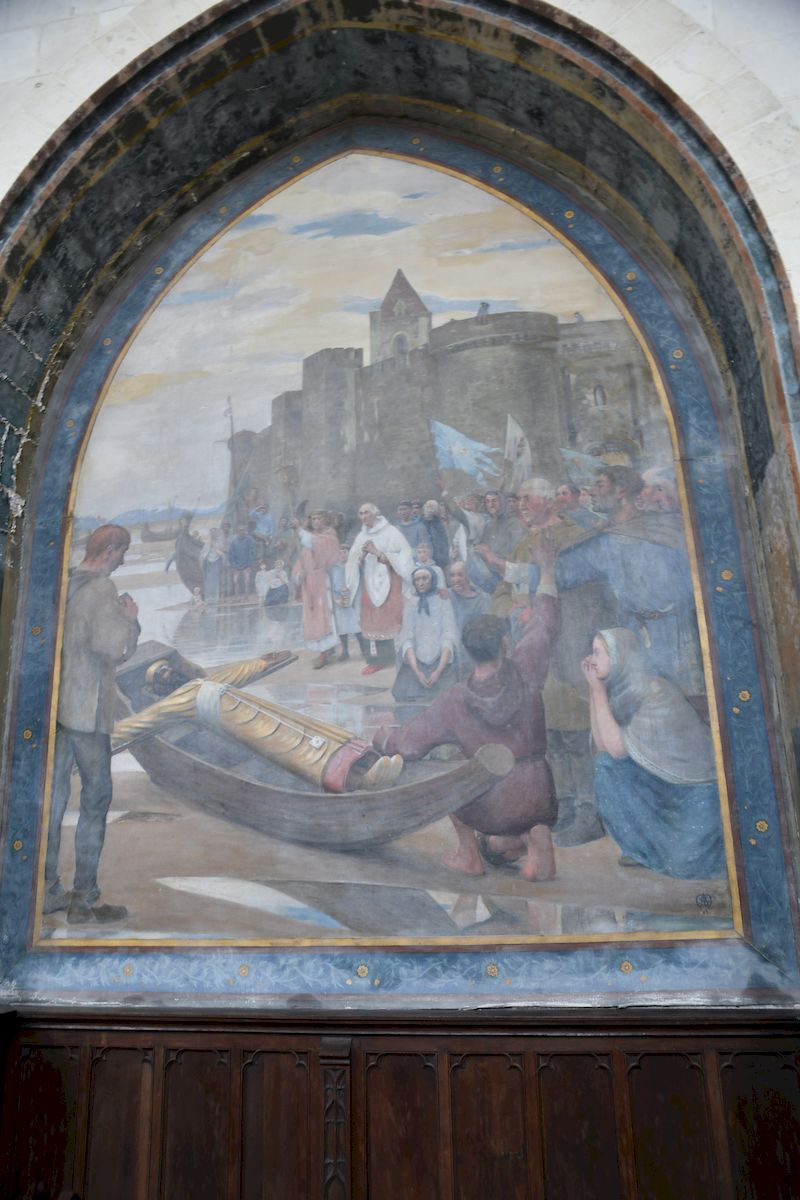 Dans la nef, Emma nous rappelle l’arrivée d’une barque portant un des 3 crucifix de Nicodème.