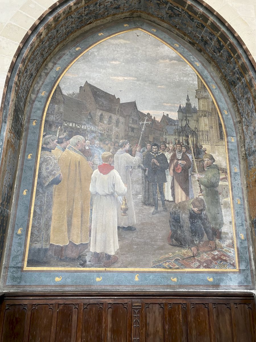 En 1101, un miracle se produisit. Une barque venant de Palestine s’échoua avec un crucifix en bois réputé être un des trois crucifix attribués à Nicodème.