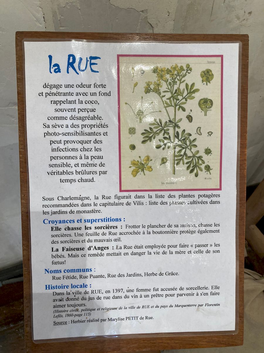 Histoire locale : en 1397, Dame Catherine (Ruenne) fut accusée de sorcellerie, elle avait mis par vengeance, lors de l’office, du jus de rue dans le vin du prêtre (homme intouchable) pour parvenir à s’en faire aimer pour toujours et le prêtre ne s’est pas bien senti. De ce fait, elle a été emprisonnée et bannie de la cité.