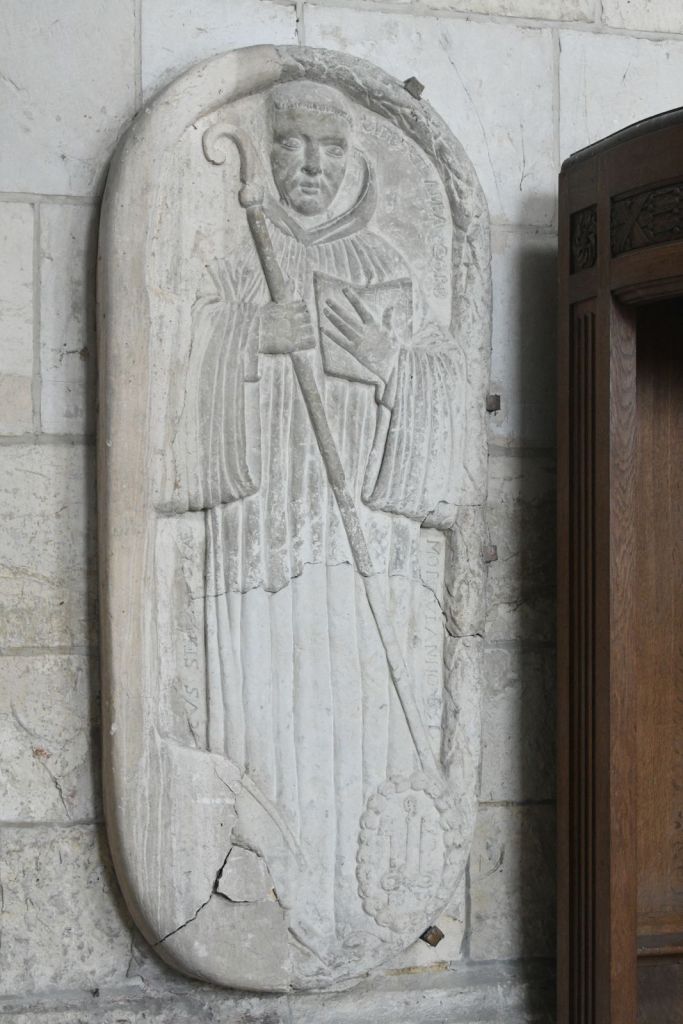 Le trône abbatial est installé sur la gauche ainsi qu’un reliquaire contenant la tête d’Adalard, abbé, cousin de Charlemagne, qui a joué un rôle important dans la tenue et la gestion de l’abbaye, par ses écrits pratiques concernant l’organisation et l’économie d’une abbaye.
