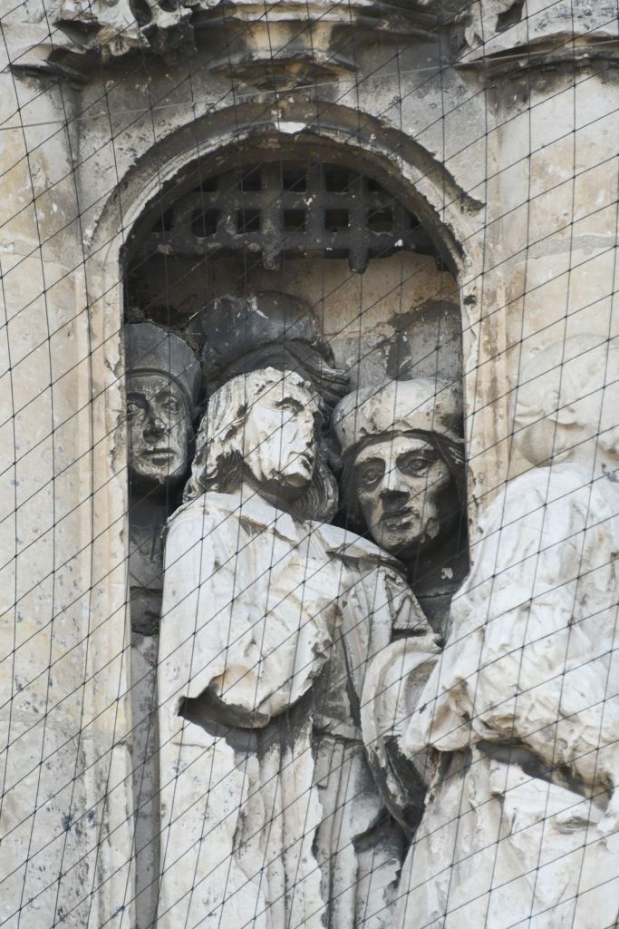 La restauration du tympan devrait avoir lieu quand les sculpteurs auront terminé le chantier de N.D de Paris. Fera-t-on une remise à neuf ? Se posera la question de ce qu’il convient de faire : refaire à neuf, enlever les ajouts ? Nettoyage il y aura, mais on ne devrait pas refaire, semble-t-il.