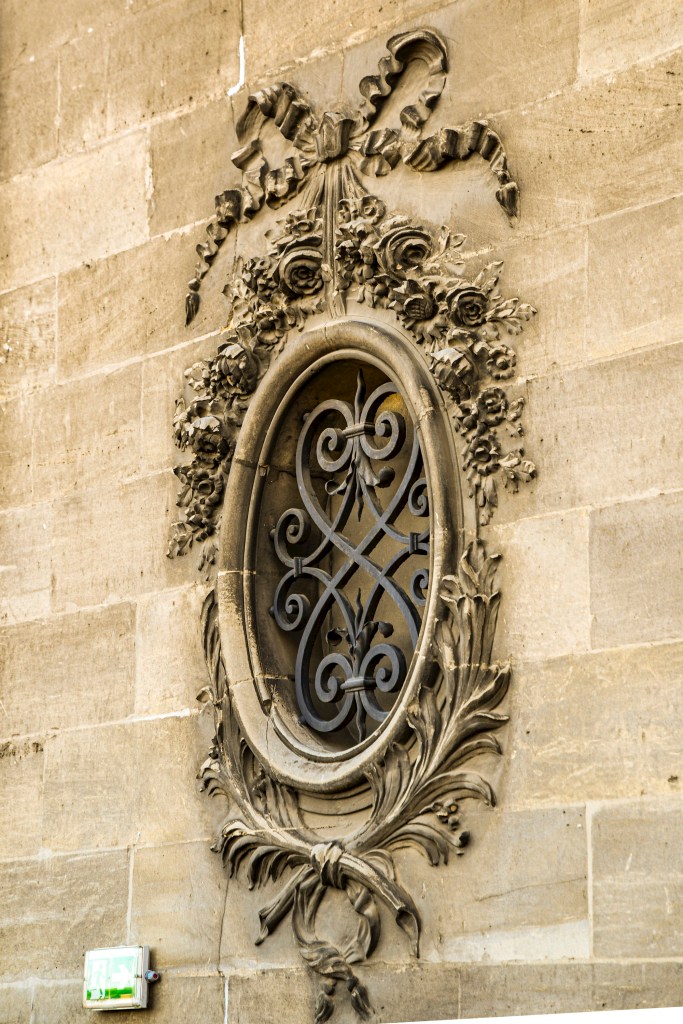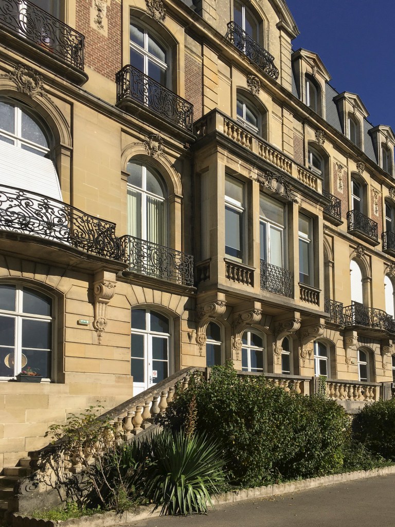 La façade montre un œil de bœuf à rubans et guirlandes de fleurs (néo XVIIIe siècle), qui serait une demande d’Alice. Au-dessus de l’entrée, une tête barbue se trouve au premier étage. La façade est en pierre de taille au rez-de-chaussée et en briques aux étages. Des pots à feux au premier étage pourraient rappeler, aux ouvriers travaillant en face, le souvenir du mari d’Alice décédé. La signature de l’architecte figure à droite de l’entrée sur rue.
